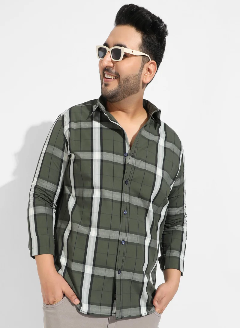 Instafab Plus Men's Olive Green Tartan Plaid Shirt For Casual Wear | Spread Collar | Long Sleeve | Button Closure | Cotton Shirts Crafted With Comfort Fit For Everyday Wear