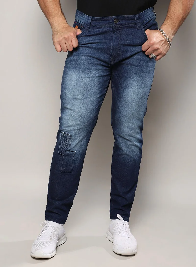 Instafab Plus Men's Dark Blue Embroidered Patched Denim Jeans For Casual Wear | Dark-Wash | 5 Pockets | Button Closure | Denim Jeans Crafted With Comfort Fit For Everyday Wear