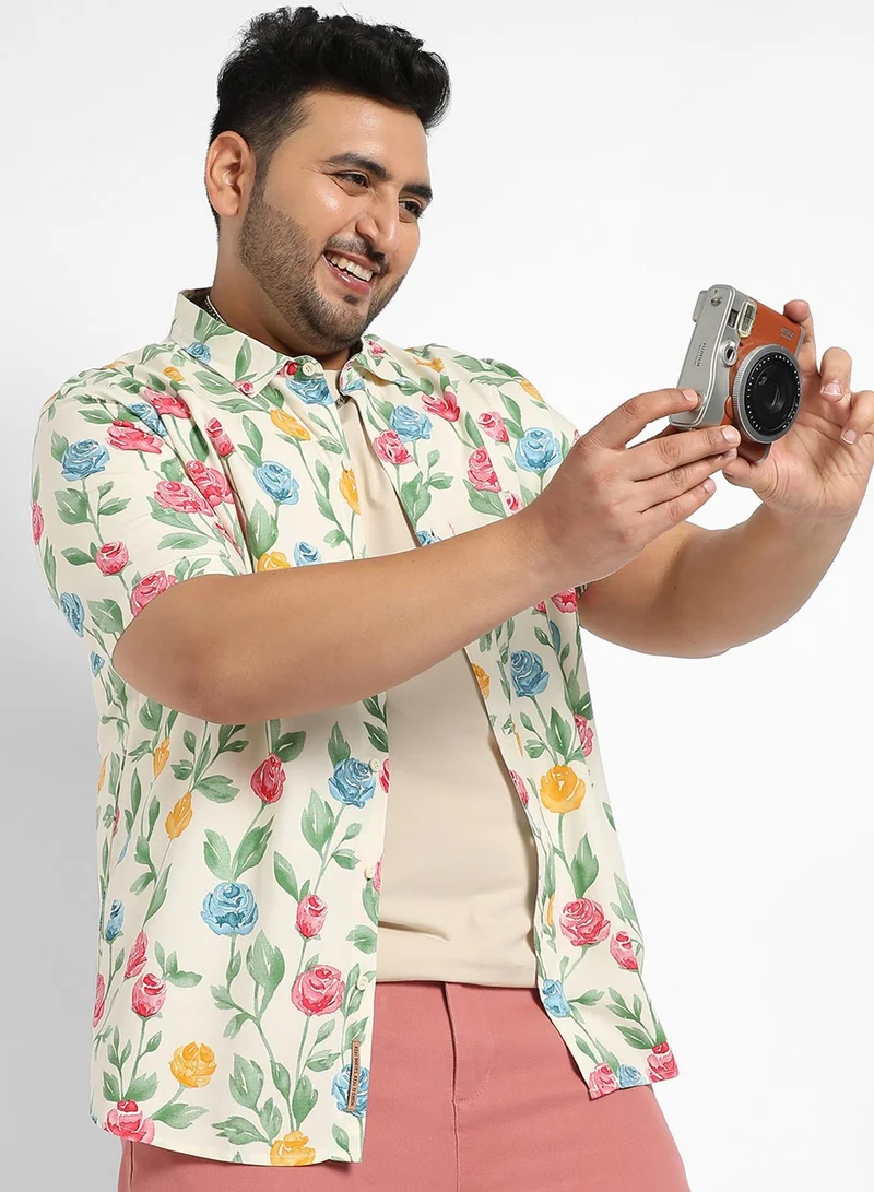 Instafab Plus Men's Multicolour Rose Garden Print Shirt For Casual Wear | Spread Collar | Short Sleeve | Button Closure | Heavy Rayon Shirt Crafted With Comfort Fit For Everyday Wear