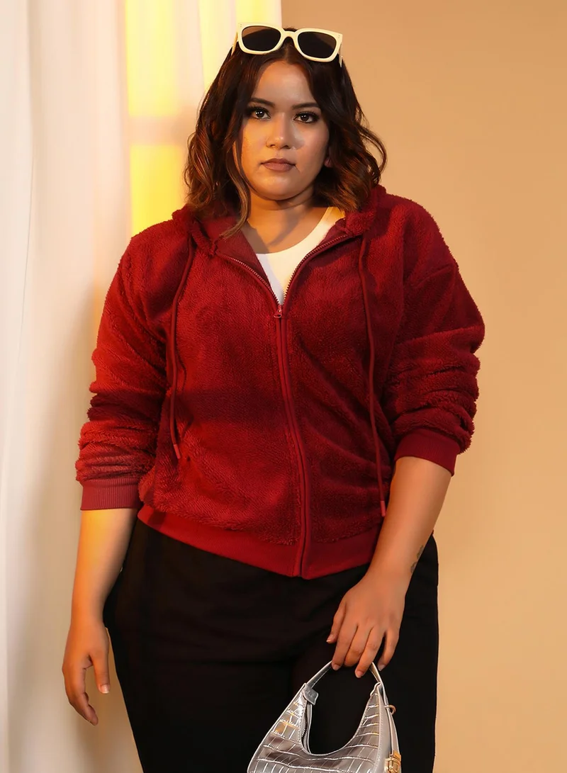 Women's Carmine Red Zip-Front Fleece Hoodie