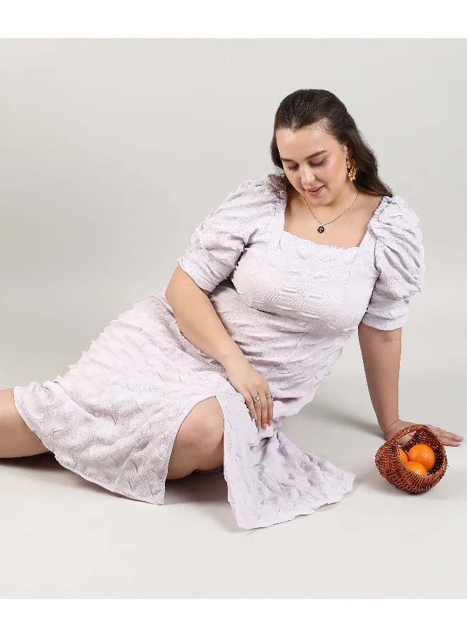 Women's Lilac Creased Midi Dress For Casual Wear | Square Neck | Short Sleeve | Pull On Closure | Plus-Size Dress Crafted With Comfort With For Everyday Wear