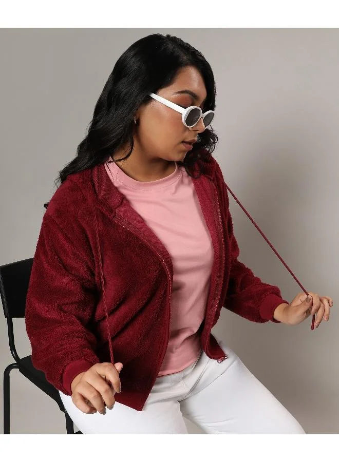 Women's Carmine Red Zip-Front Fleece Hoodie