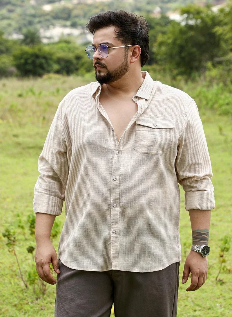 Instafab Plus Men's Sand Beige Rhythm-Weave Shirt For Casual Wear | Spread Collar | Long Cuffed Sleeves | Button Closure | Plus Size Shirt Crafted With Comfort Fit For Everyday Wear
