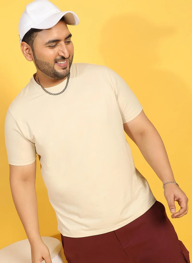 Instafab Plus Men's Beige Basic Plus-Size Fit T-Shirt For Casual Wear | Crewneck | Short Sleeve | Pull On Closure | Cotton T-Shirt Crafted With Comfort Fit For Everyday Wear