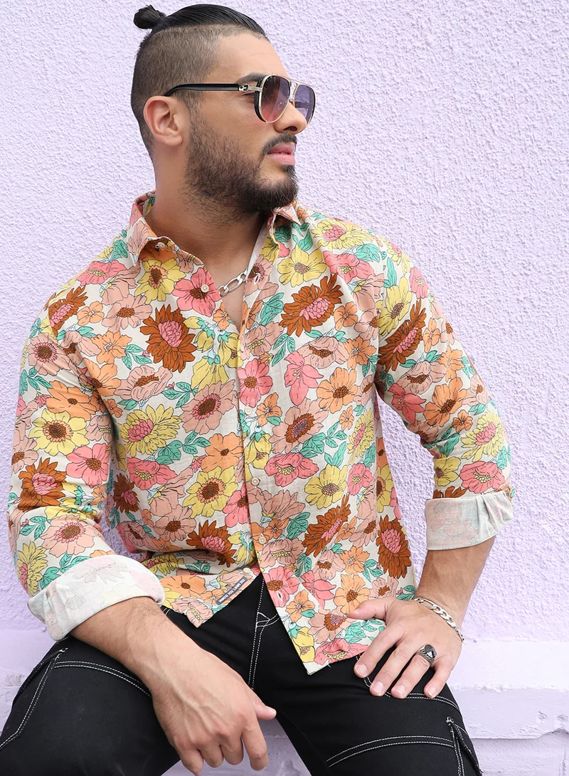 Instafab Plus Men's Multicolour Floral Cluster Shirt For Casual Wear | Spread Collar | Long Sleeve | Button Closure | Cotton Shirt Crafted With Comfort Fit For Everyday Wear