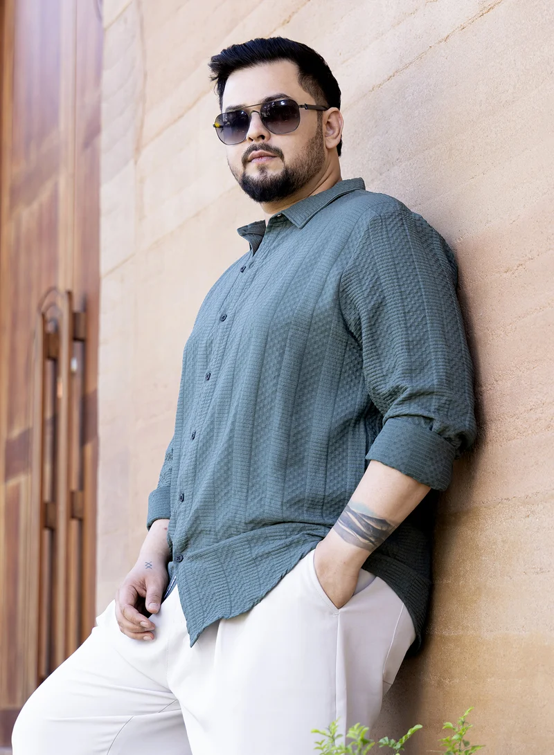 Instafab Plus Men's Pine Green Parallel-Check Tactile Shirt For Casual Wear | Spread Collar | Long Cuffed Sleeves | Button Closure | Plus Size Shirt Crafted With Comfort Fit For Everyday Wear