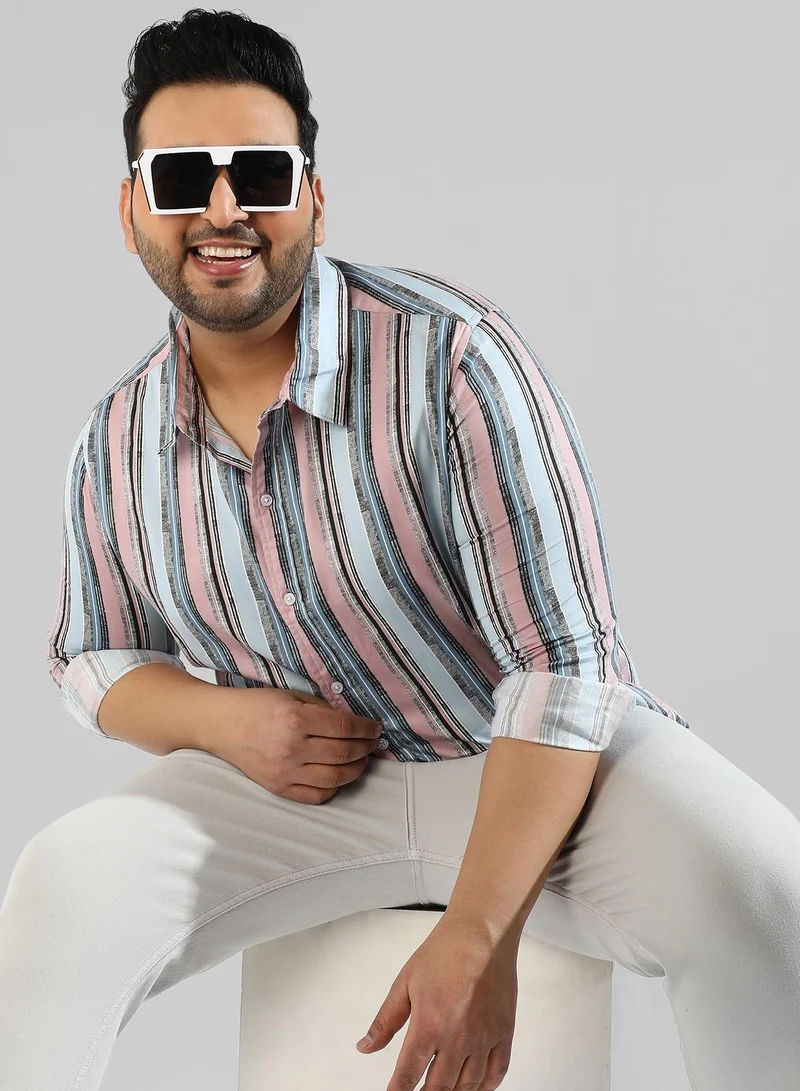 Instafab Plus Men's Multicolour Striped Plus-Size Fit Button Up Shirt For Casual Wear | Cotton Spread Collar Shirt Crafted With Regular Sleeve & Comfort Fit For Everyday Wear