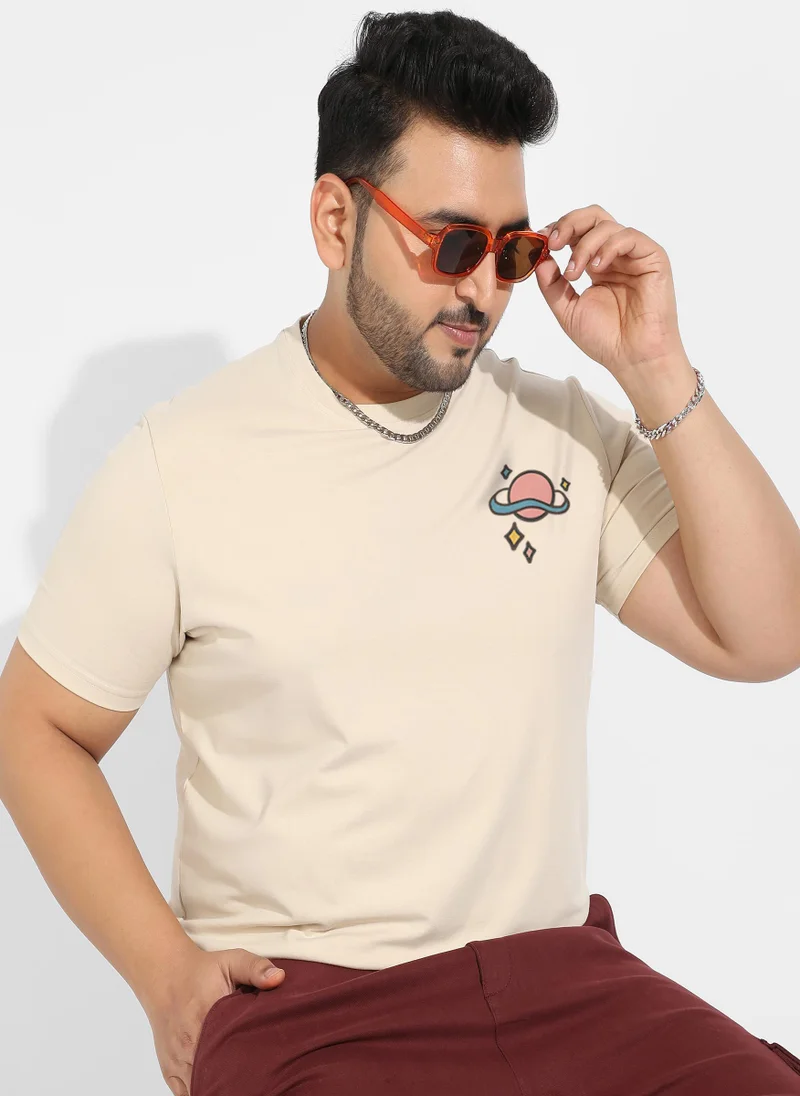 Instafab Plus Men's Saltbox Beige Ribbed Relaxed Polo T-Shirt For Casual Wear | Polo Neck | Short Regular Sleeves | Half-Zip Closure | Plus Size T-Shirt Crafted With Comfort Fit For Everyday Wear