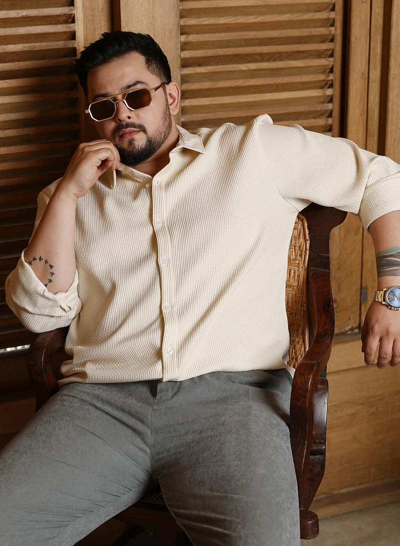 Instafab Plus Men's Chalk White Weave-Tactile Shirt For Casual Wear | Spread Collar | Long Cuffed Sleeves | Button Closure | Plus Size Shirt Crafted With Comfort Fit For Everyday Wear