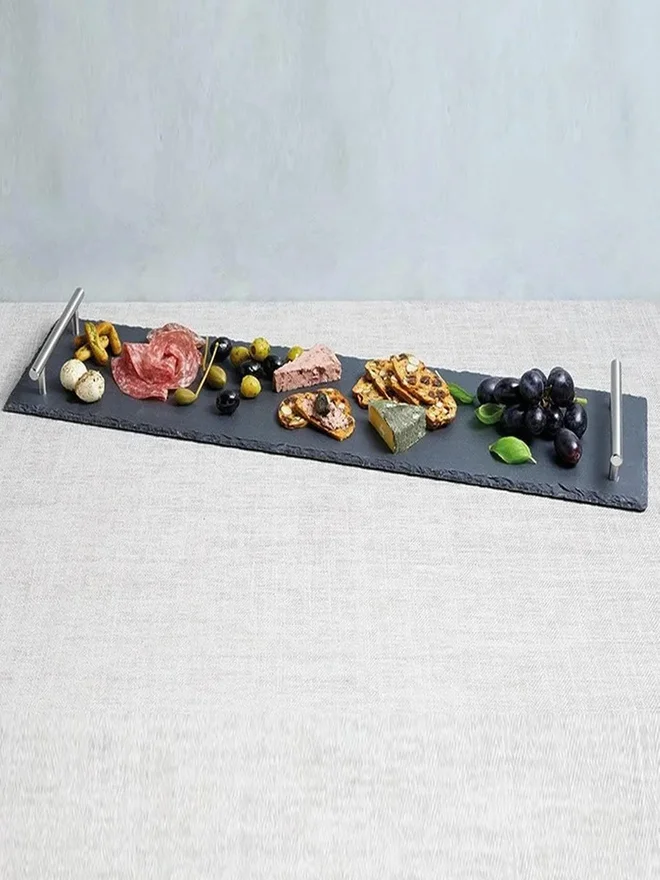 1CHASE Natural Stone Slate Serving Tray with Metal Handle 35x15cm