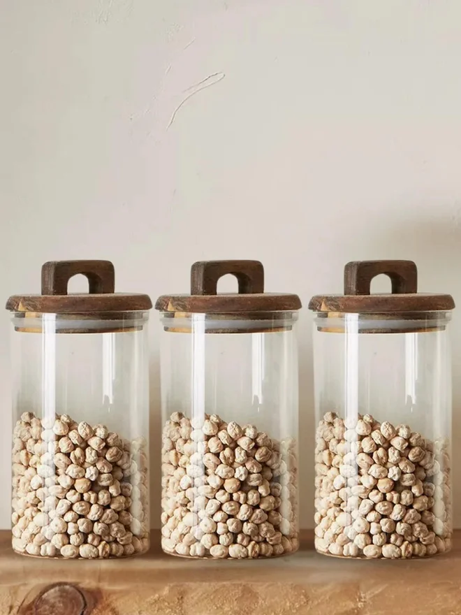 1CHASE 3-Piece Borosilicate Glass Food Storage Jar With Acacia Wood Air Tight Lid 1000ML