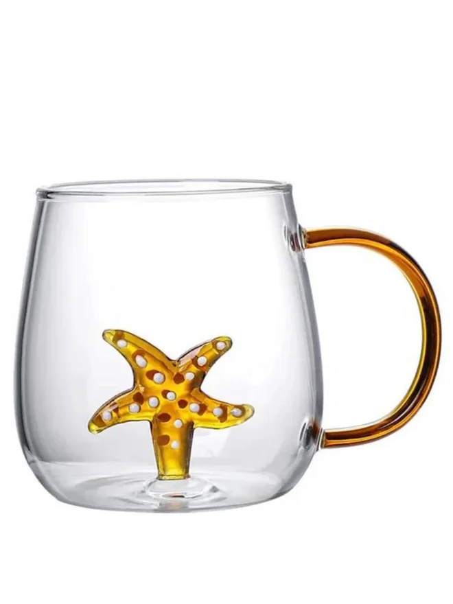 1CHASE Borosilicate 3D Coffee Cup with Handle 300ml, Star Fish