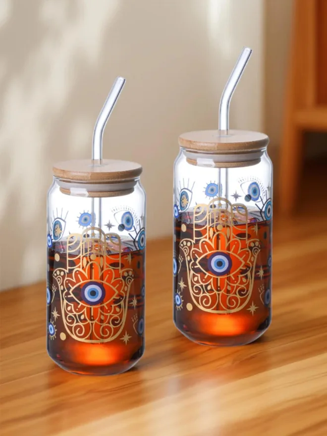 1CHASE Set of 2 - Evil Eye Borosilicate Sipper Glasses 550ml