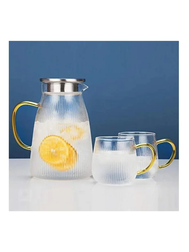 1CHASE 3-Piece Borosilicate Stripe Glass Water Pitcher and Drinking Glass