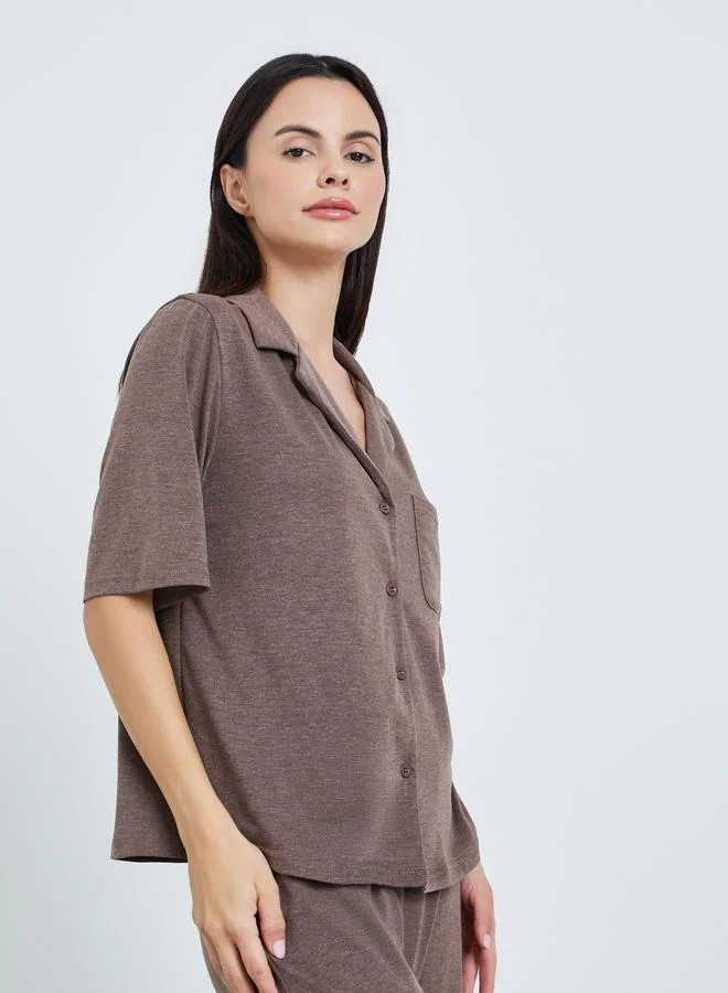 Women Brown Melange Shirt and Pyjama Set