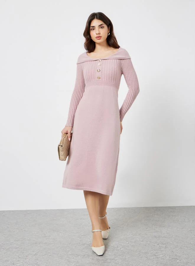 Beige Buttoned A-Line Midi dress