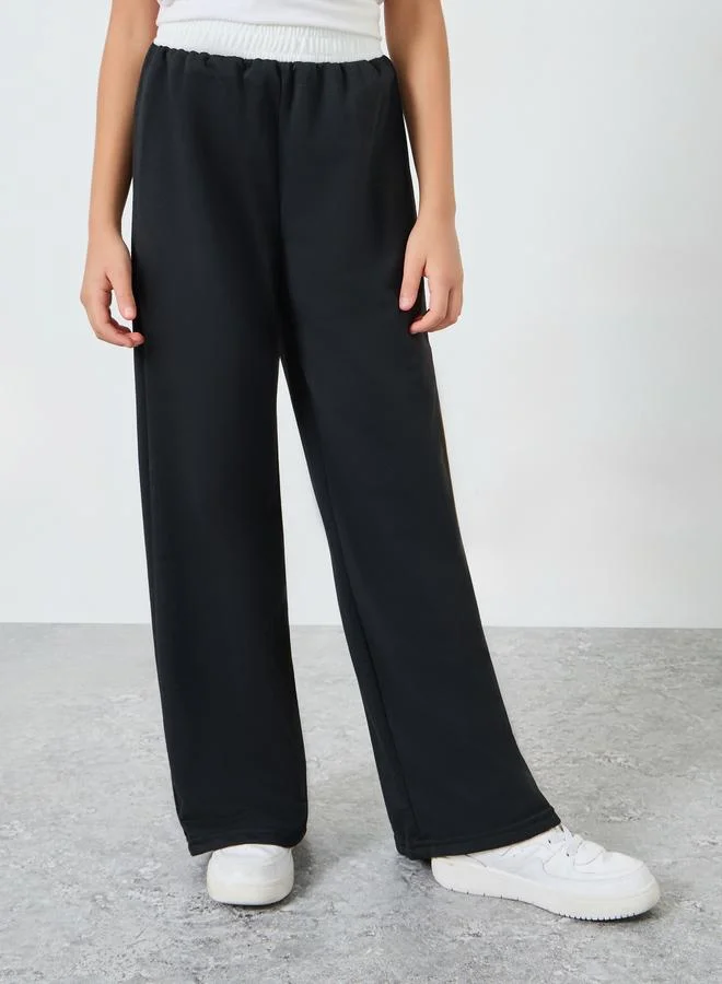 Solid T-Shirt & Open Hem Piping Detail Pyjama Set