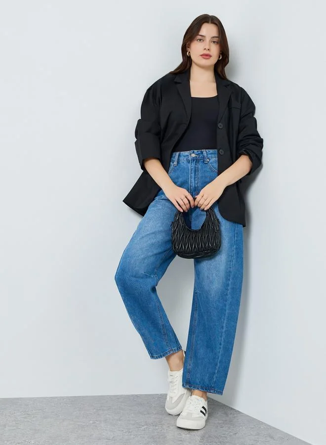 Women Medium Blue Oversized Denim Shirt with Pockets