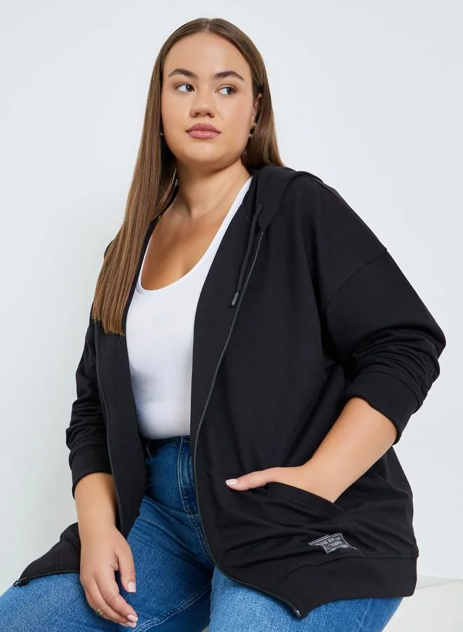 Styli Black Color Block Applique Detail Bomber Jacket