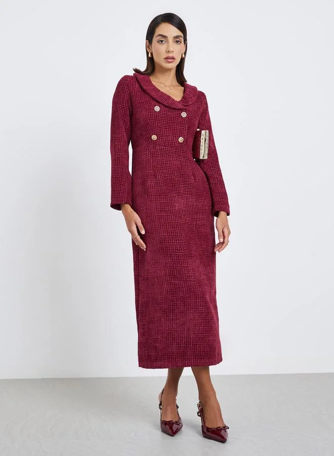 Women Tweed Long Sleeves Sheath Maxi Dress
