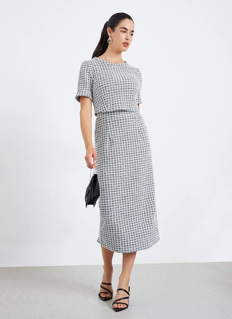 Women Sheath Tweed Midi Dress