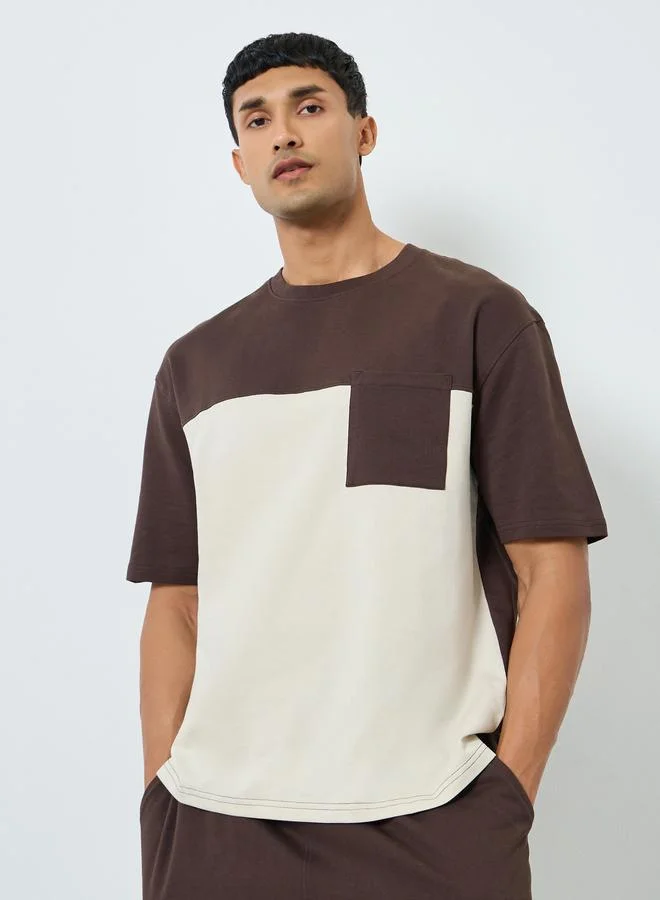 Solid Round Neck T-Shirt with Badge Detail