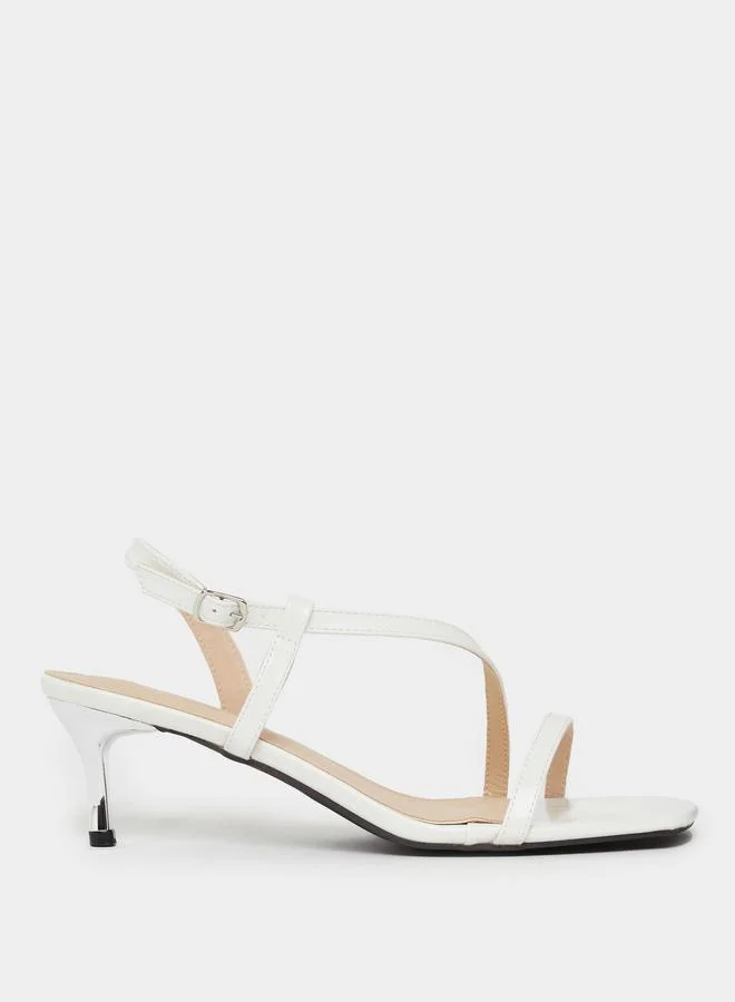 Women White Strappy Stiletto Heel Sandals