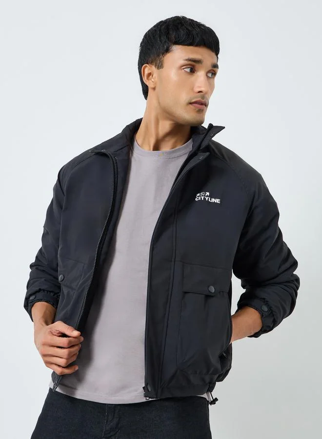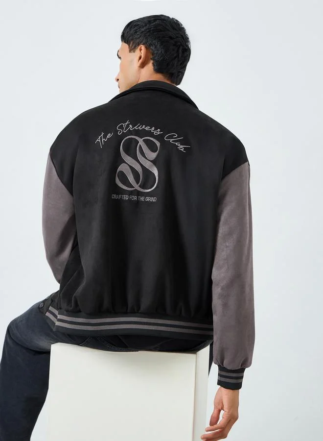 Men Relaxed Varsity Jacket with Graphic Patchwork