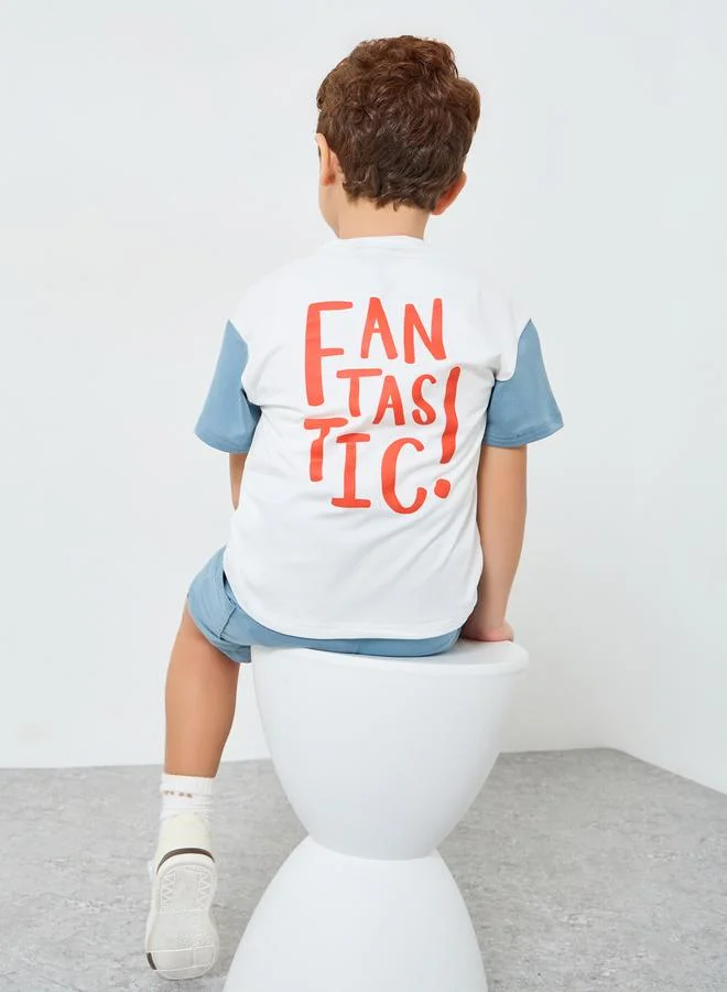 Boys Navy Color Block Polo T-Shirt and Shorts Set