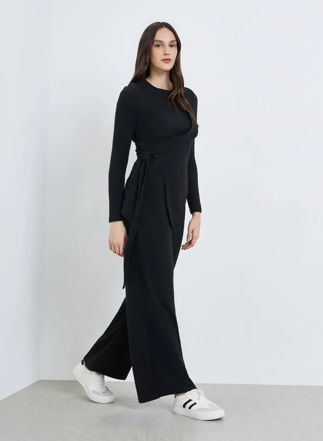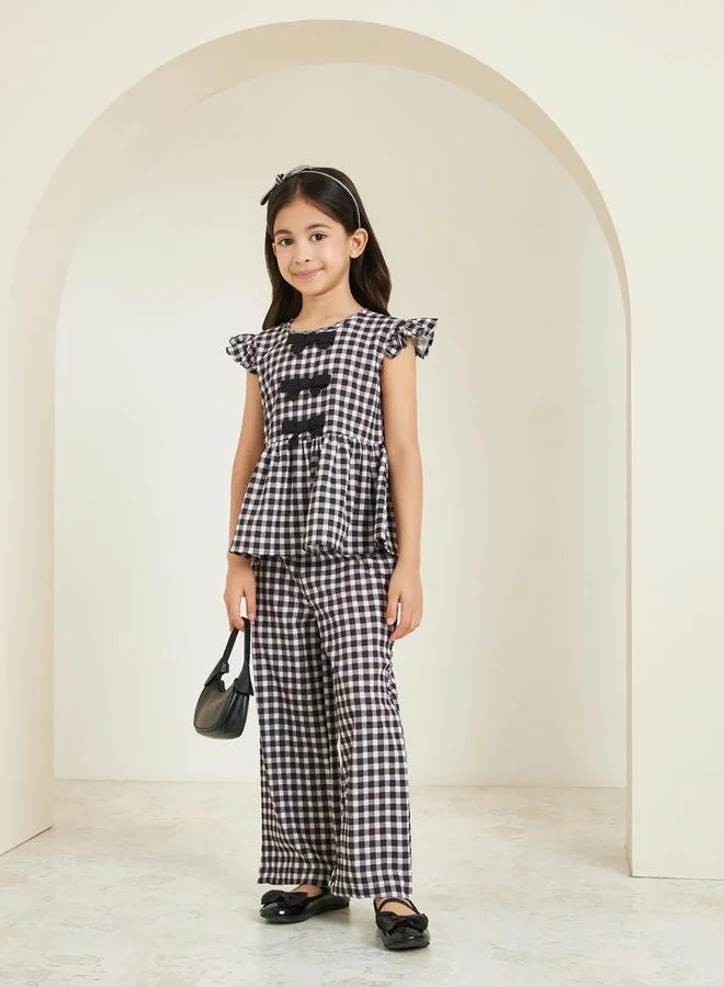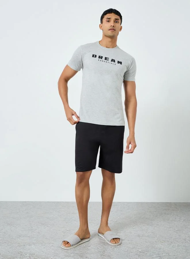Plus Size Pocket Trim T-Shirt and Bow Print Pyjama Set