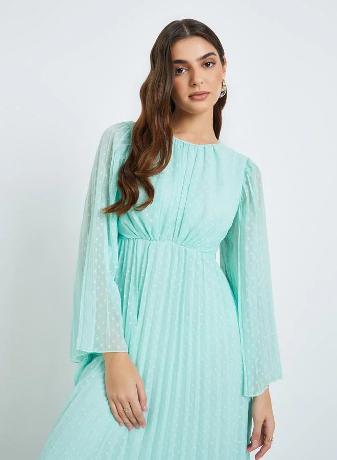 Women Green Dobby Fabric A-Line Maxi Dress