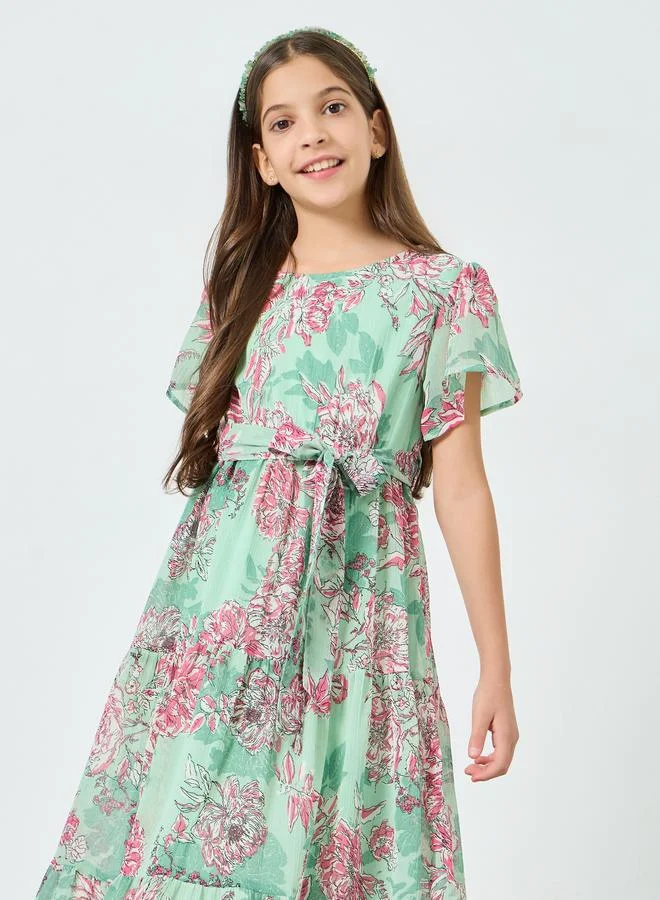 Teen Girls Floral Dress with Tie Belt
