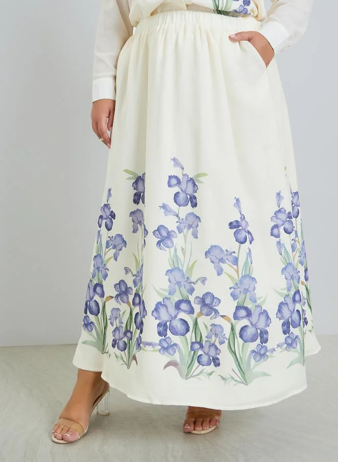 Styli Floral Print Sleeveless Shirt Maxi Dress