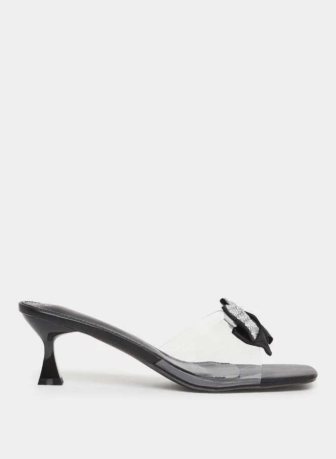 Women Black Kitten Heel Sandals with Bow Detail