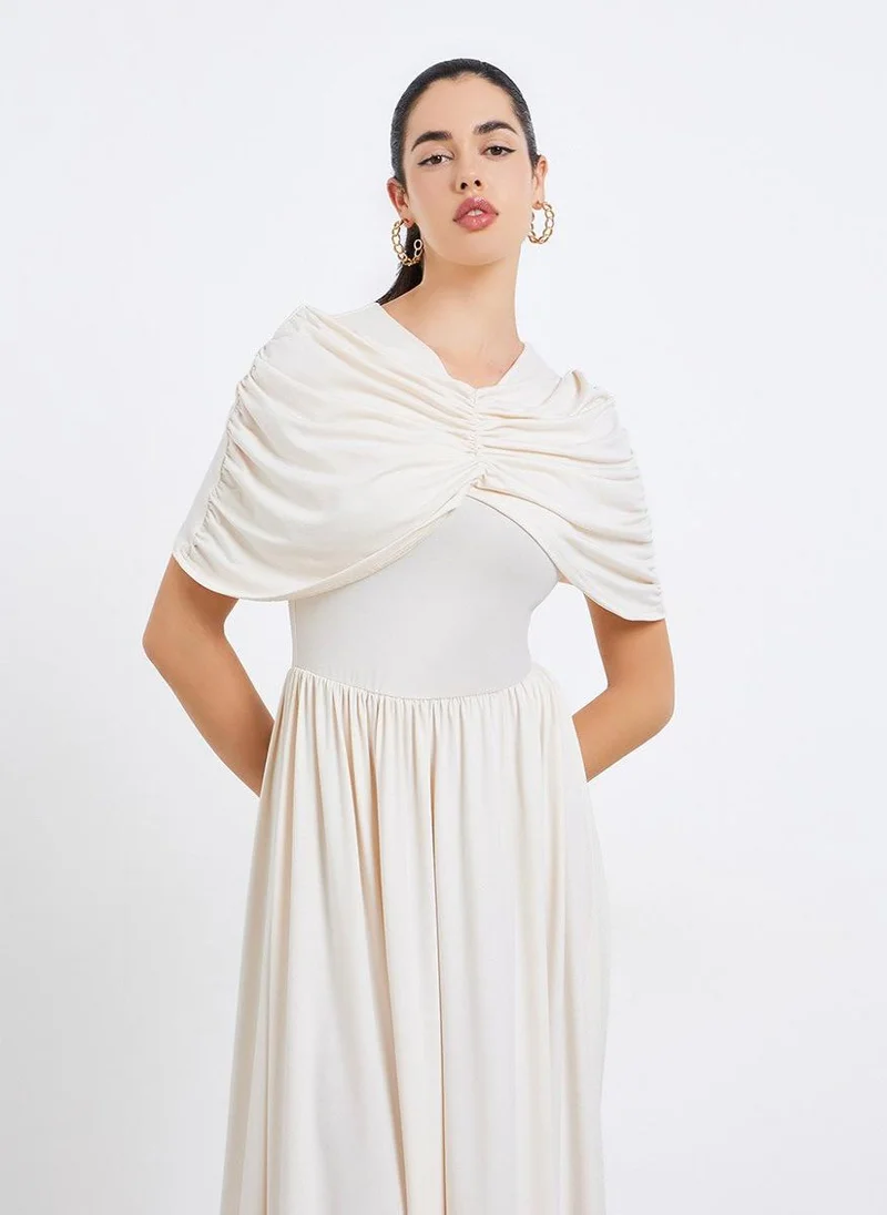 Styli Buttoned Mermaid Hem Midi Dress with 3/4th Sleeves