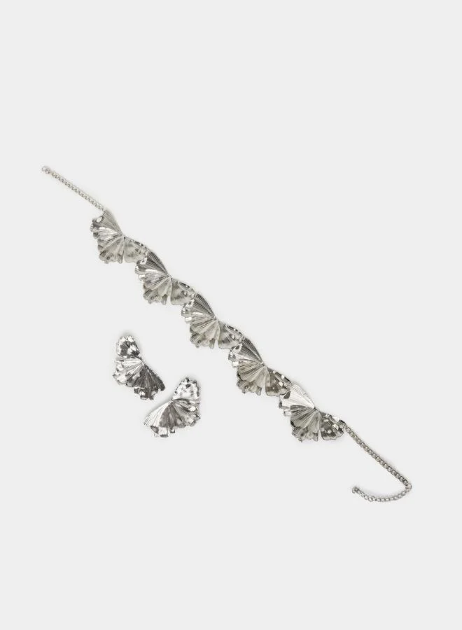 Styli Textured Knit Shoulder Cut-Out Sweater Midi Dress