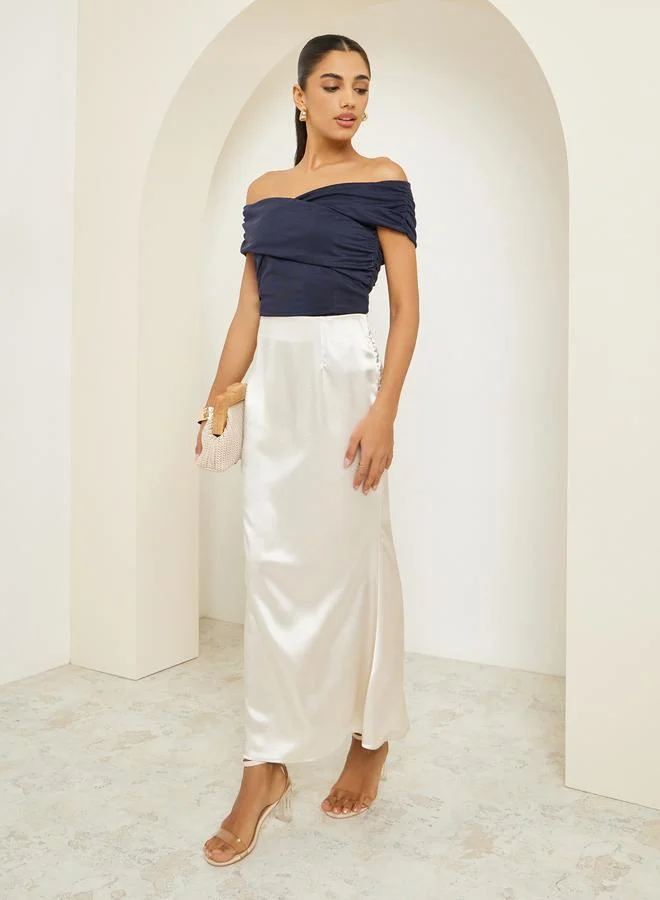 Styli Asymmetric Neck Pleated Detail Bodysuit