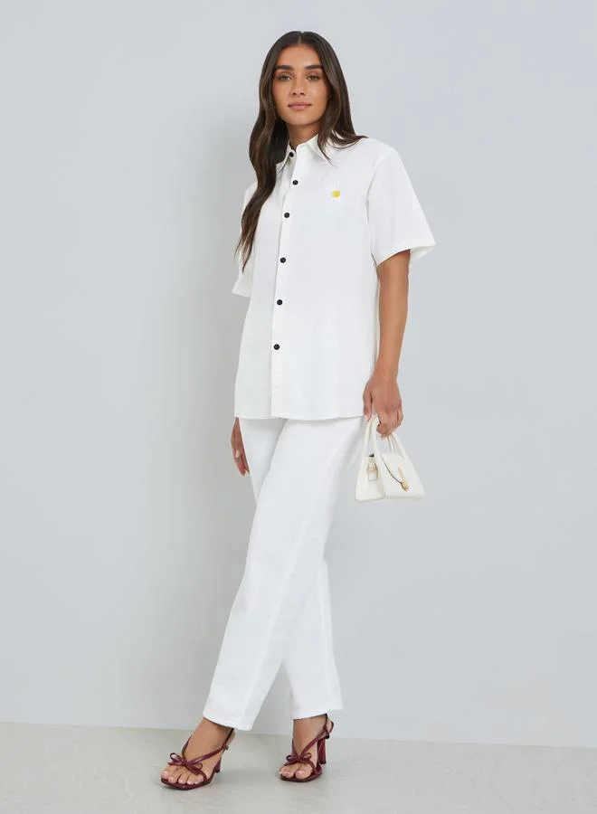 Styli Textured Collared Straight Leg Jumpsuit with Belt