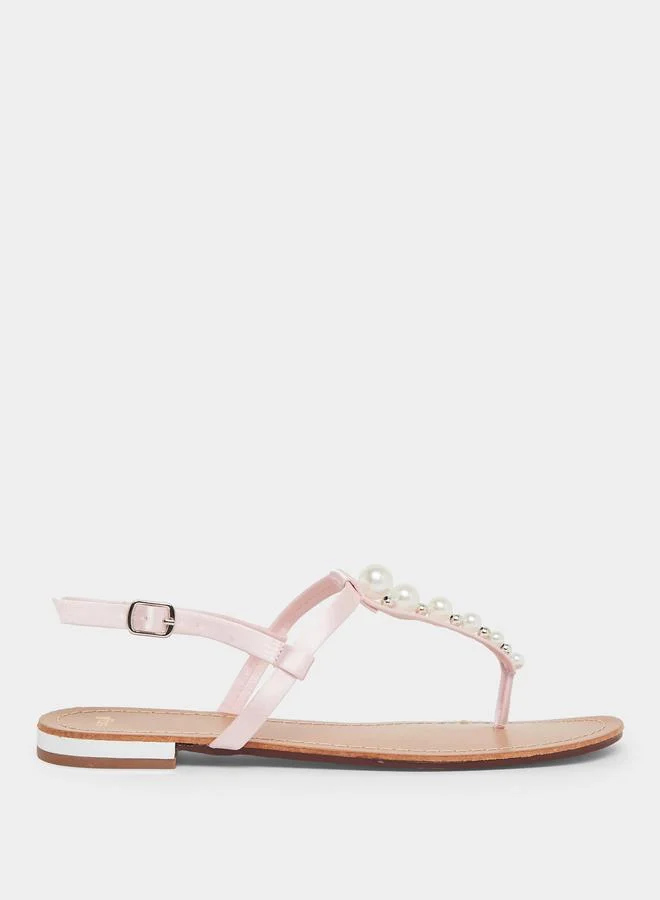 Embellished Bow Detail Ankle Strap Flat Sandals