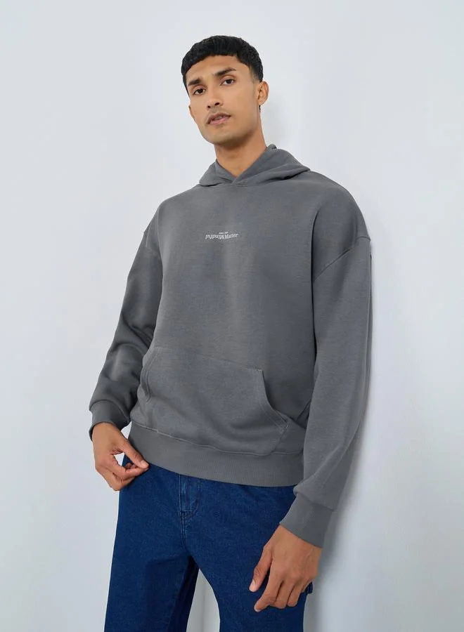Men Grey Slogan Print Oversized Hoodie