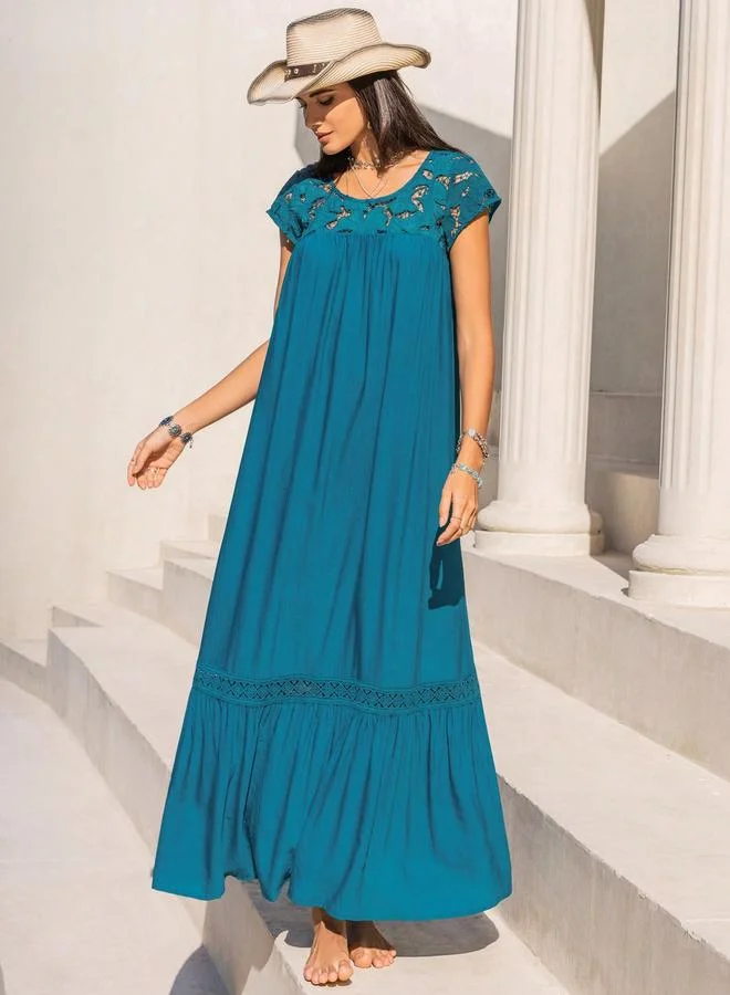Women Turquoise Rhinestone Embellished Golden Trim Jalabiya