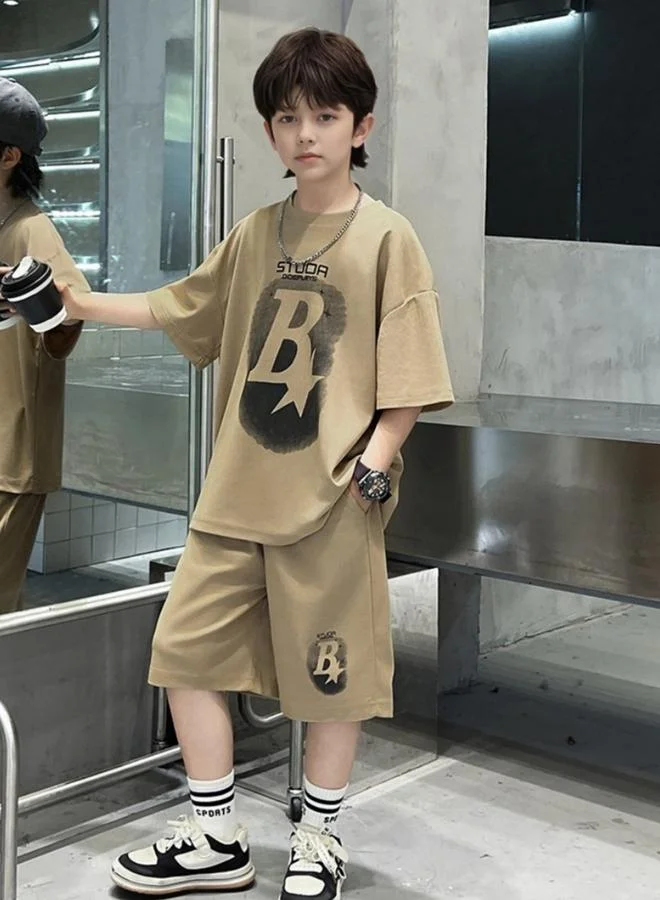 Boys Graphic Round Neck T-Shirt and Shorts Set