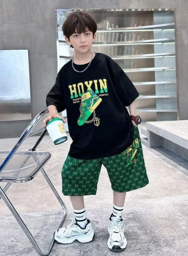 Boys Printed Round Neck T-Shirt and Shorts Set