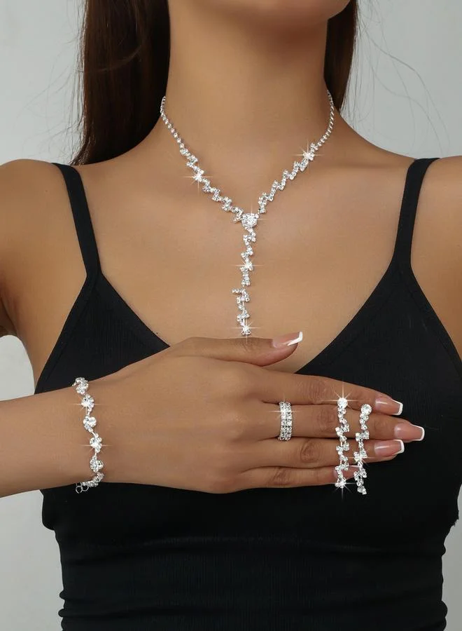 Take Two Embellished Water Drop Pendant Necklace and Earrings Jewelry Set