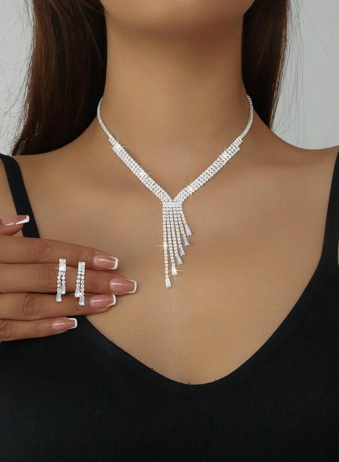 2-Piece Embellished Tassel Necklace And Earrings Jewelry Set