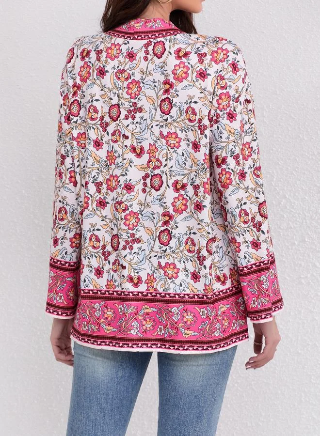 Women's Floral Printed V Neck Long Sleeve Maxi Dress
