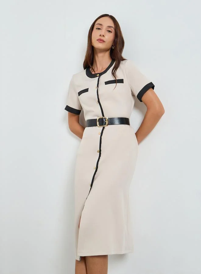 Take Two Solid Short Sleeve Square Neck Midi Dress