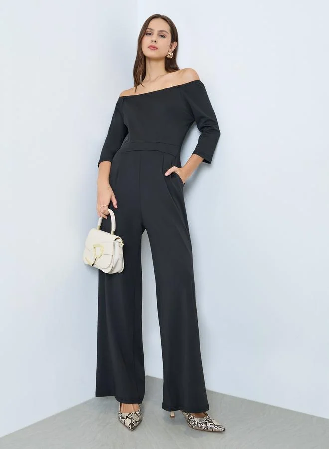 Black Solid Pocket Detail Straight Leg Pants