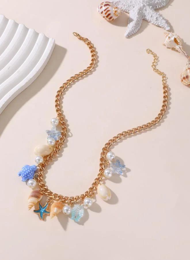 Pack of 3 - Teal Beaded Ocean Charm Necklace