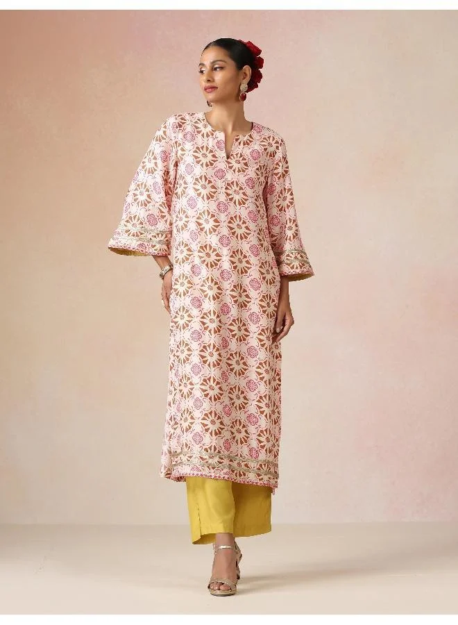 trueBrowns Pink Boota Print Viscose Straight High-Slit Kurta Set